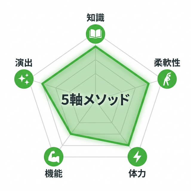 料理にレシピがあり、スポーツにフォームがあるように、オトコ同士のパートナーシップにも「理想的な身体の使い方」があります。 当ゼミでは、感覚やノリではなく、パーソナルトレーニング(機能解剖学)やピラティス(運動学)に基づいたロジカルなアプローチで、あなたのパフォーマンスを根本から作り直します。そのために、パフォーマンスを客観的に分析・評価できる「5つの軸」に体系化。 この5軸に沿って1つずつ改善していくだけで、誰でも確実にレベルアップできるカリキュラムを構築しました。